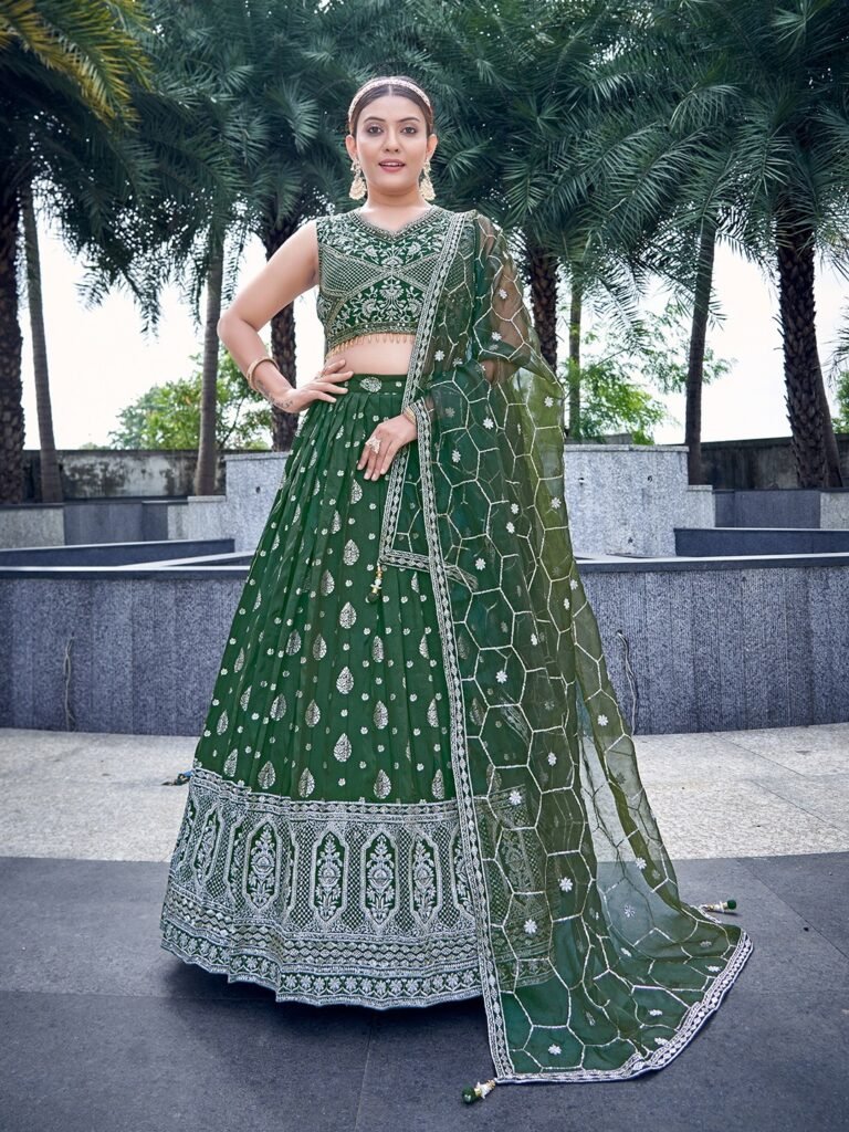 Olive Green Embroidered Georgette Lehenga