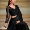Black Party Wear Saree for Women Designer Lace Work