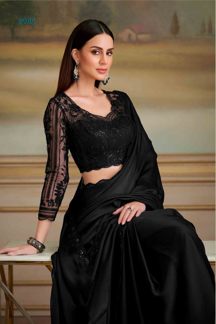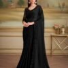 - Saree: Jet Black Solid Satin Chiffon Saree