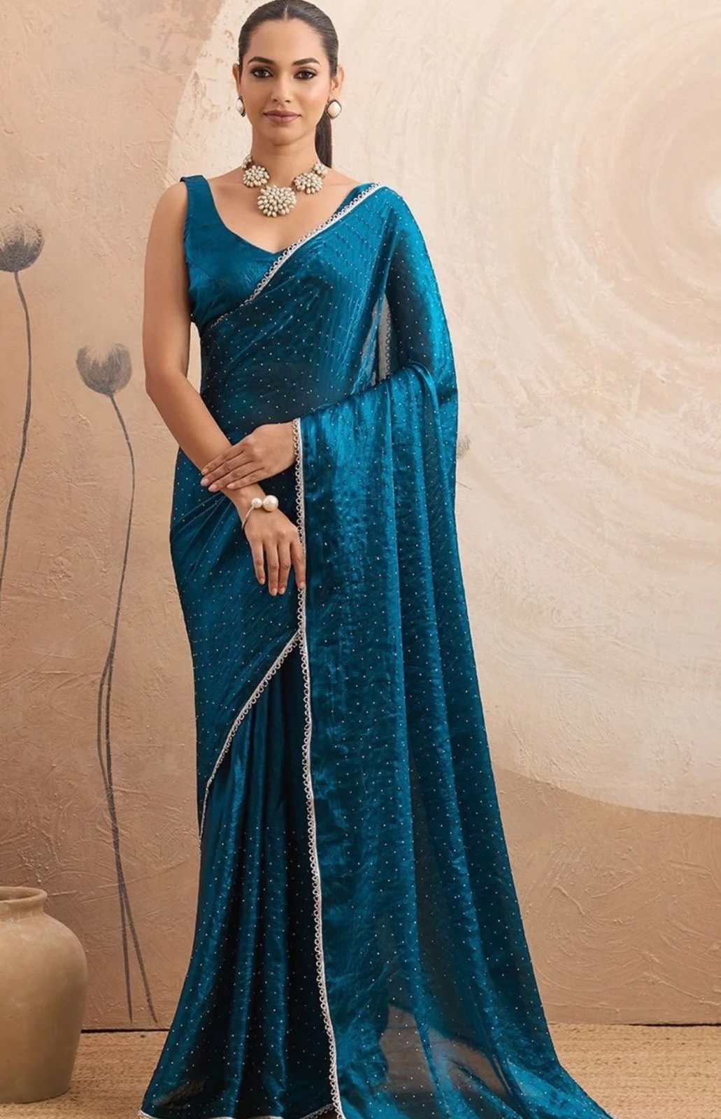 Chiffon Two Tone Saree with Super Diamond Work & Lace Border