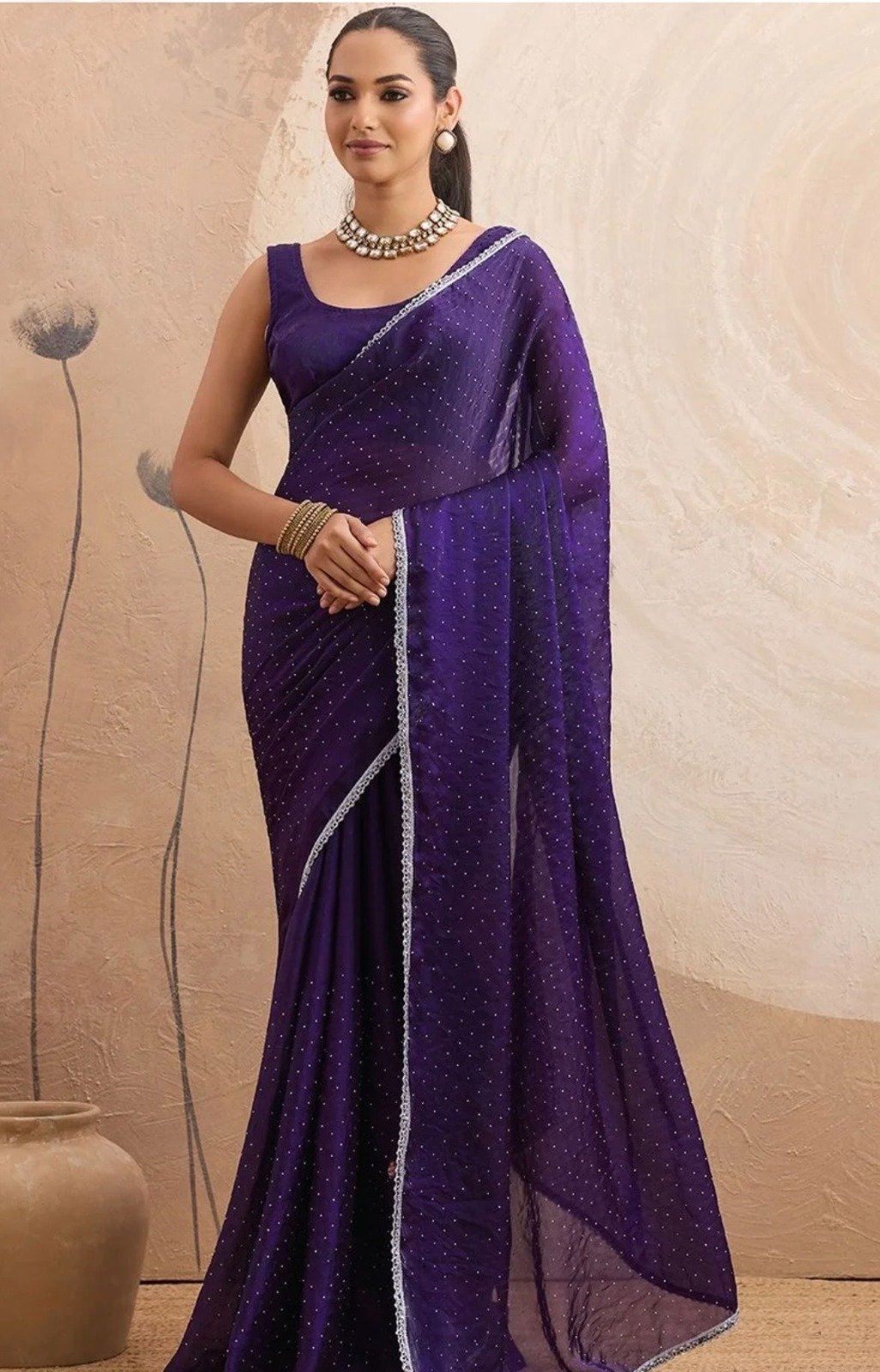Elegant Chiffon Diamond Work Saree for Party & Festive Wear