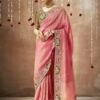 - Color & Work: Pink Designer Zari Embroidered Saree