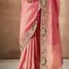 Luxury Pink Zari Embroidered Designer Saree for Wedding & Festive Wear