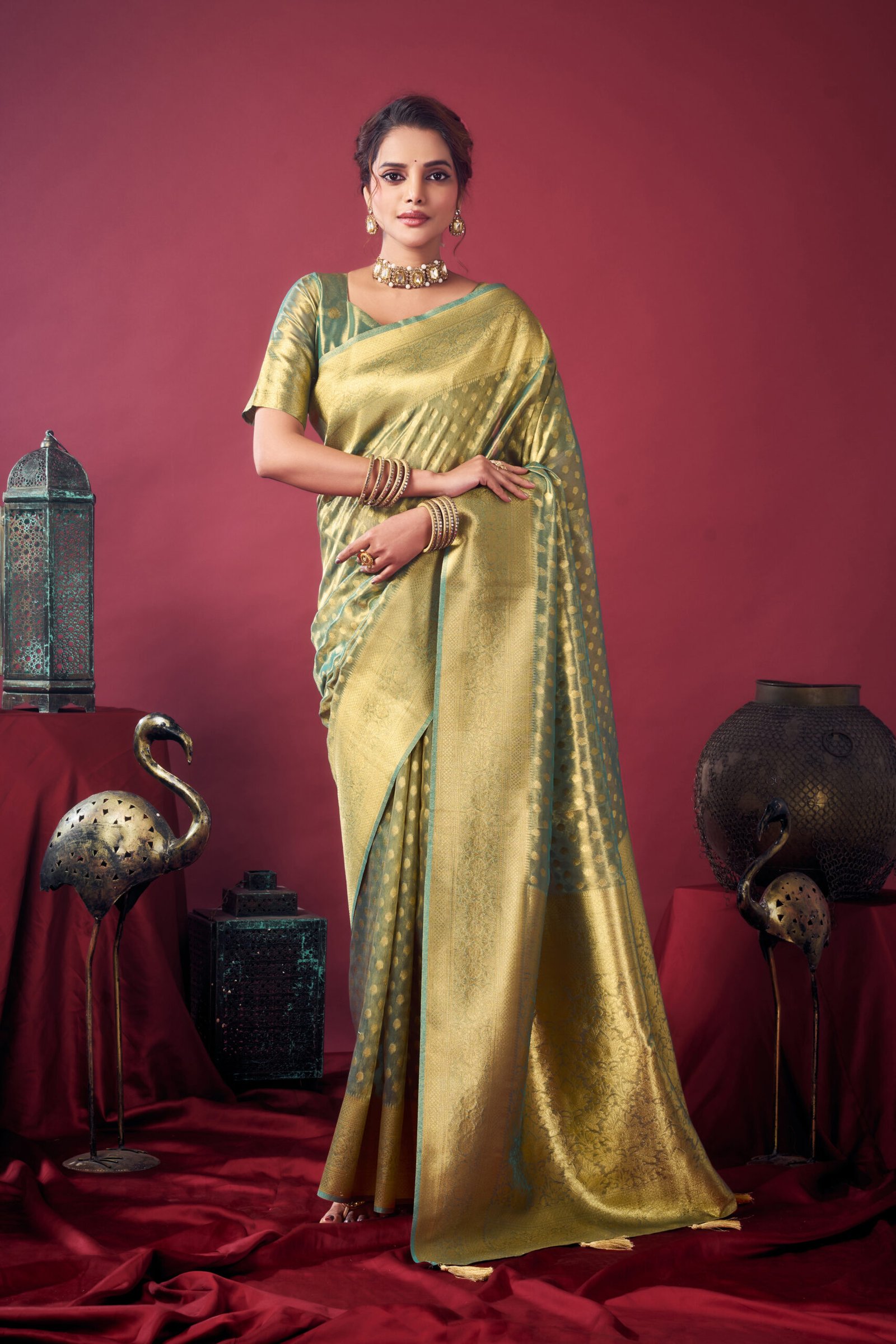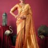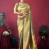The saree is crafted from high-quality tissue fabric,