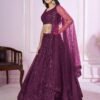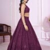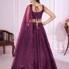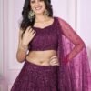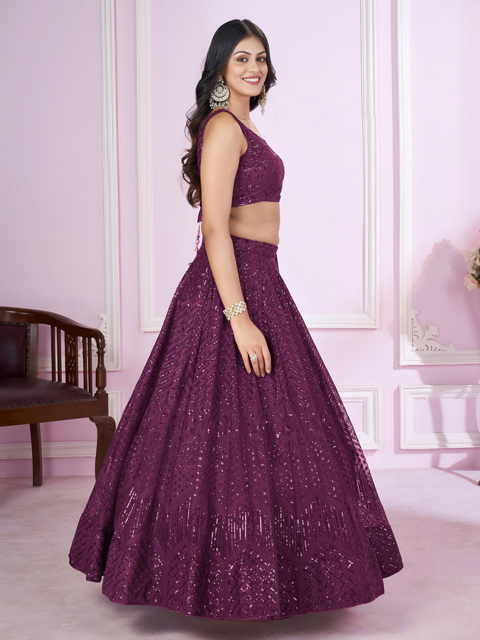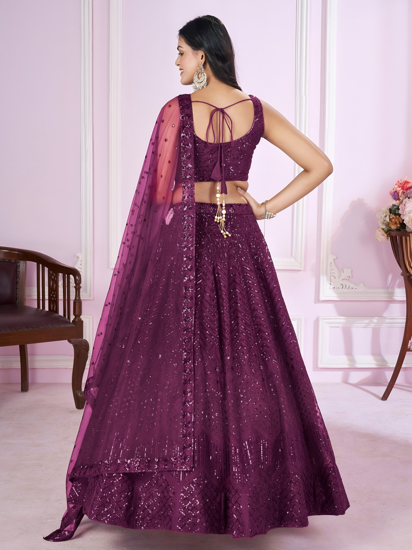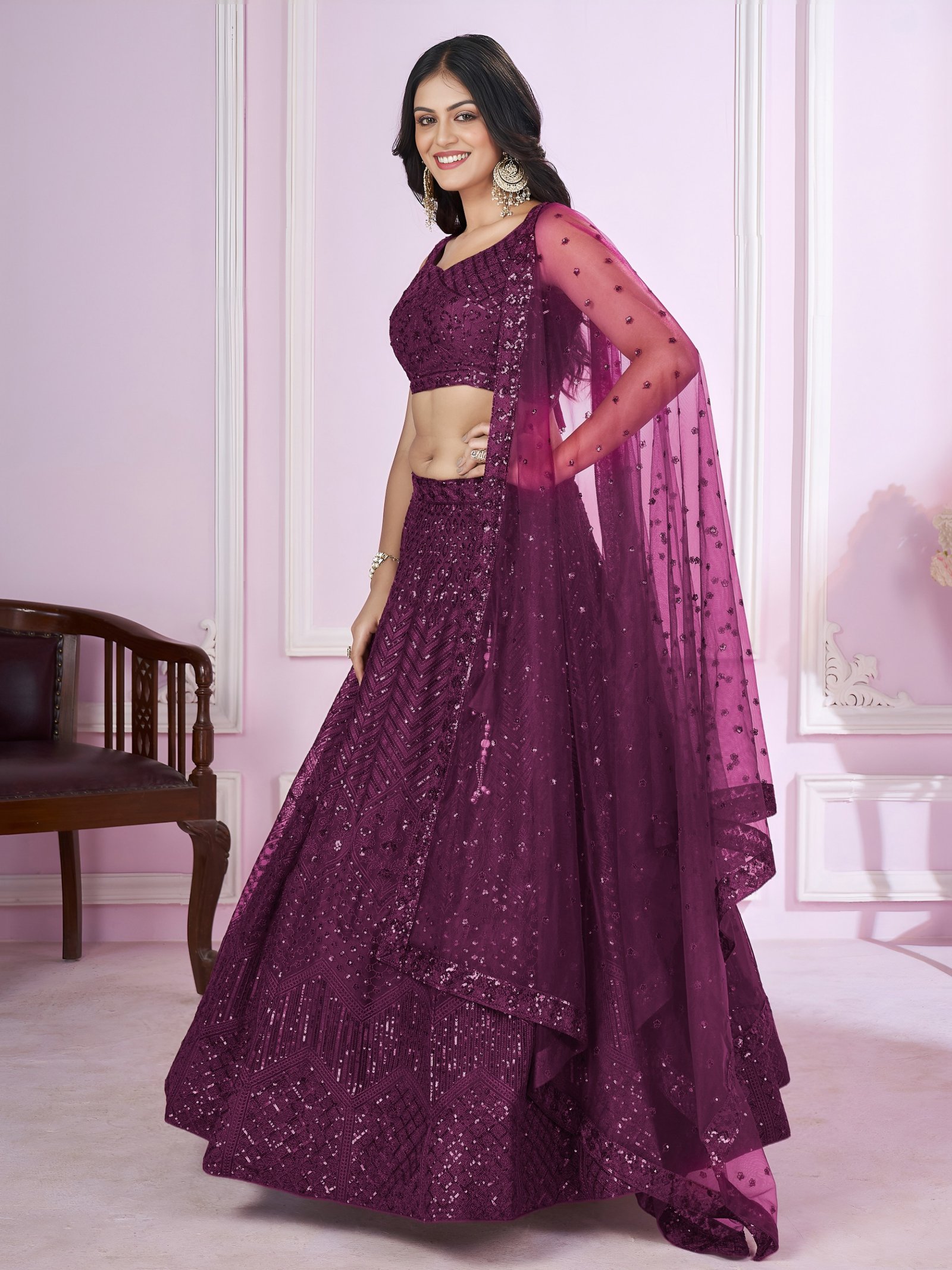 Wine Purple Sequins & Thread Embroidered Soft Net Lehenga Choli